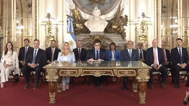 Desde las 21 horas, se emitió un mensaje grabado por cadena nacional en donde el Presidente de la Nación, Javier Milei, realizó un informe de su primer año gestión y remarcó las prioridades que tiene su administración para el 2025. Rodeados de los miembros del Gabinete del Poder Ejecutivo, ratificó que "hemos hecho la reforma estructural más grande de la historia" y anticipó que "se viene la motosierra profunda".