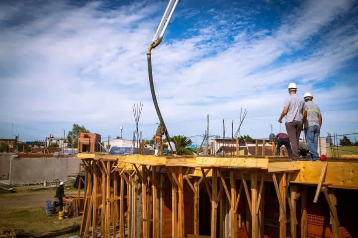 A lo largo del último día se ejecutaron labores de hormigonado de losa del primer piso del bloque de 12 viviendas. Cabe señalar que la construcción se organiza en dos bloques, uno de 16 y otro de 12 viviendas, que constan de dos y tres dormitorios.