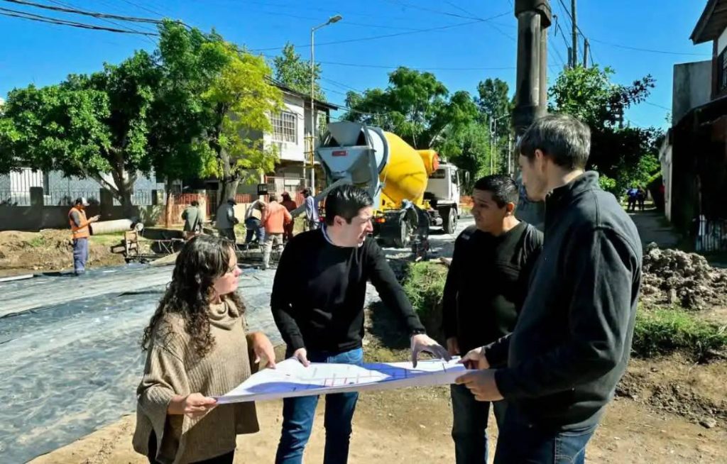 El intendente de Malvinas Argentinas Leo Nardini supervisó las obras de pavimentación e hidráulica que se llevan adelante en el Barrio Santa Mónica en la ciudad de Grand Bourg.