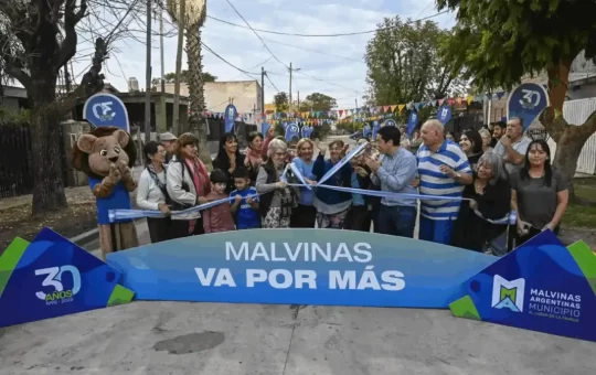 El intendente del municipio de Malvinas Argentinas, Leonardo Nardini, acompañado por la secretaria general, Noelia Correa, y por vecinos de...