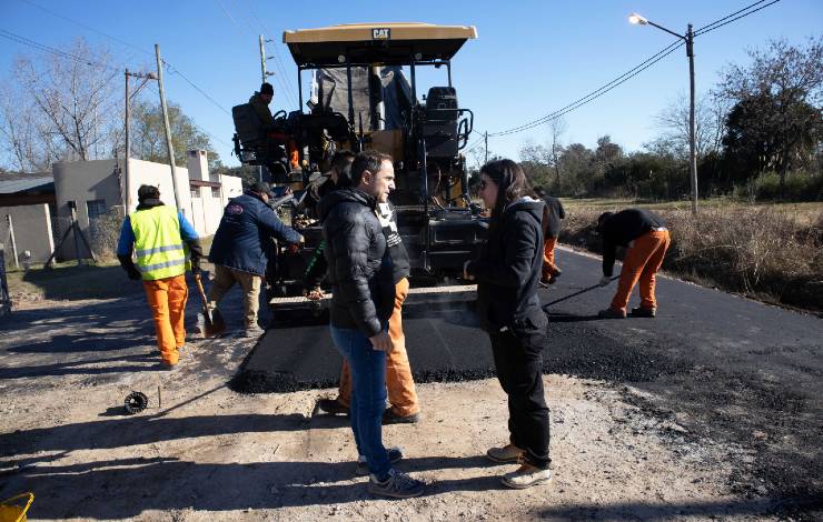 Luego de las tareas preliminares de limpieza y nivelación, actualmente la colocación del asfalto avanza por Viola, desde Mancicidor hasta Cueli, y en los próximos días continuará por Cueli, desde Viola hasta Maffeis.