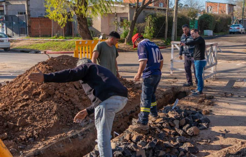 En la calle San Juan supervisó las conexiones domiciliarias que se están efectuando a partir del nuevo tendido, mientras en Coltelli y Demarco constató el inicio de la cuarta etapa de ampliación de la red en Las Campanas. Además, también se comenzó una obra histórica en Las Acacias.