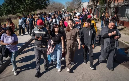 La intendenta de Moreno Mariel Fernández acompañada por la secretaria municipal, Marcela Díaz y jóvenes que participan de la Casa...