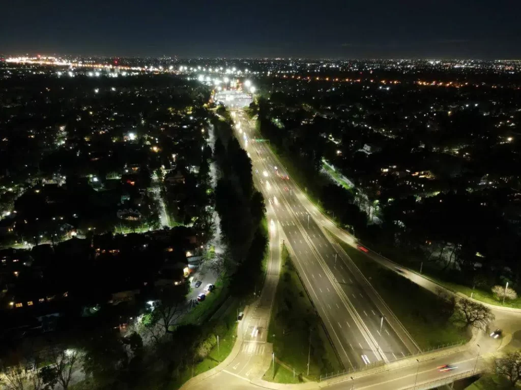 El Municipio inició el recambio a tecnología LED de las luminarias en las colectoras y frentes de la Autopista Panamericana, que atraviesa el distrito de norte a sur, priorizando el beneficio y la seguridad de los vecinos.