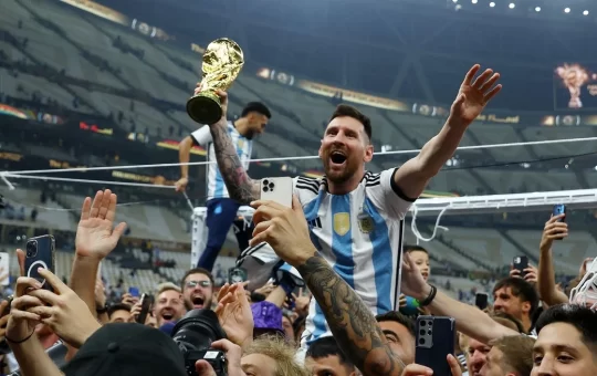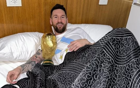 Lionel Messi amaneció abrazado a la Copa del Mundo en el predio de la AFA en Ezeiza