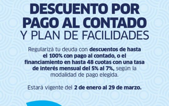 El gobierno local lanzó planes de facilidades y descuentos por pago al contado para regularizar deudas en las tasas ALSMI,...