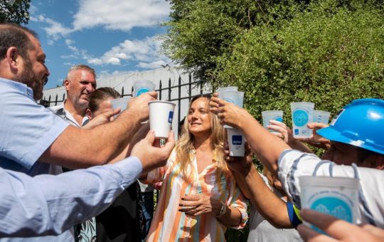La presidenta de AySA, Malena Galmarini, junto al intendente de San Miguel, Jaime Méndez, habilitó una red de agua para...