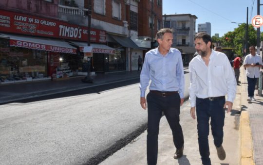 El intendente Fernando Moreira y el ministro Gabriel Katopodis recorrieron un tramo de la obra que abarca 35 cuadras, con...