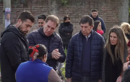 El precandidato vicegobernador bonaerense, Gustavo Posse, esta mañana junto a Diego Santilli en una recorrida por la Primera Sección electoral,...
